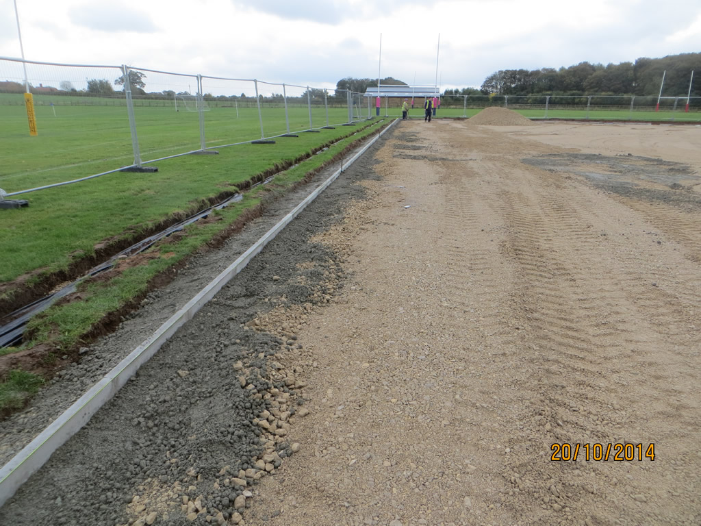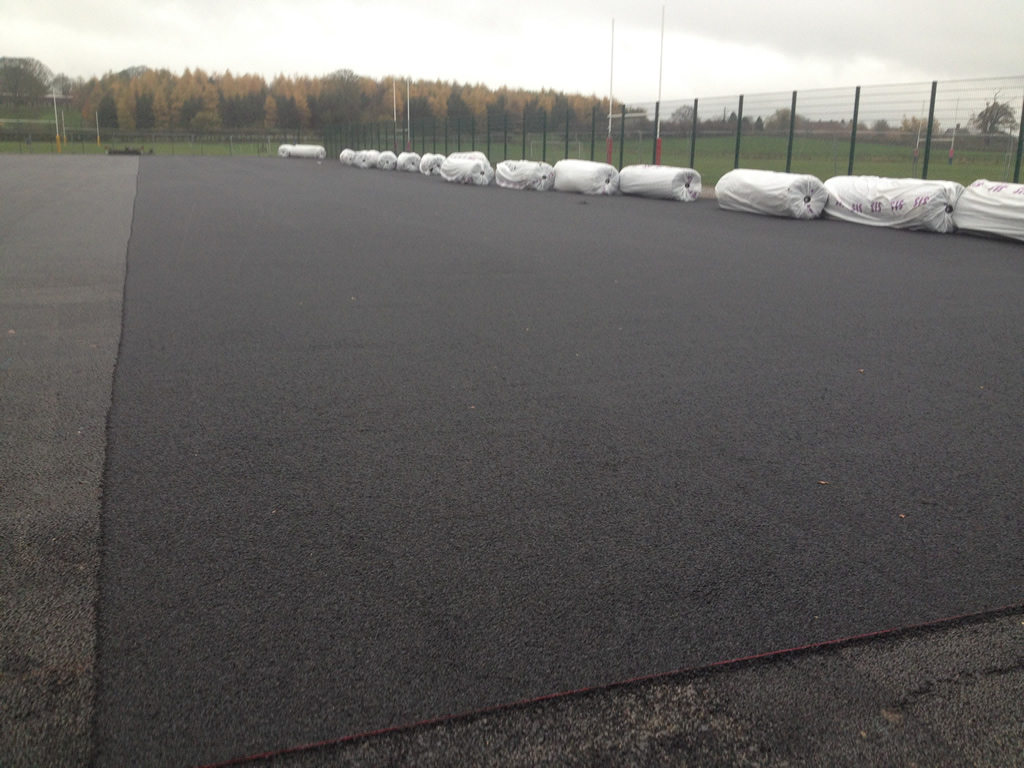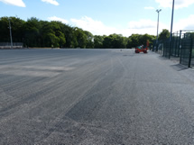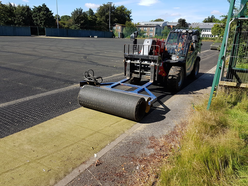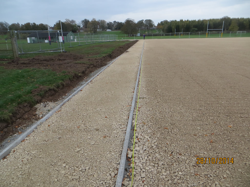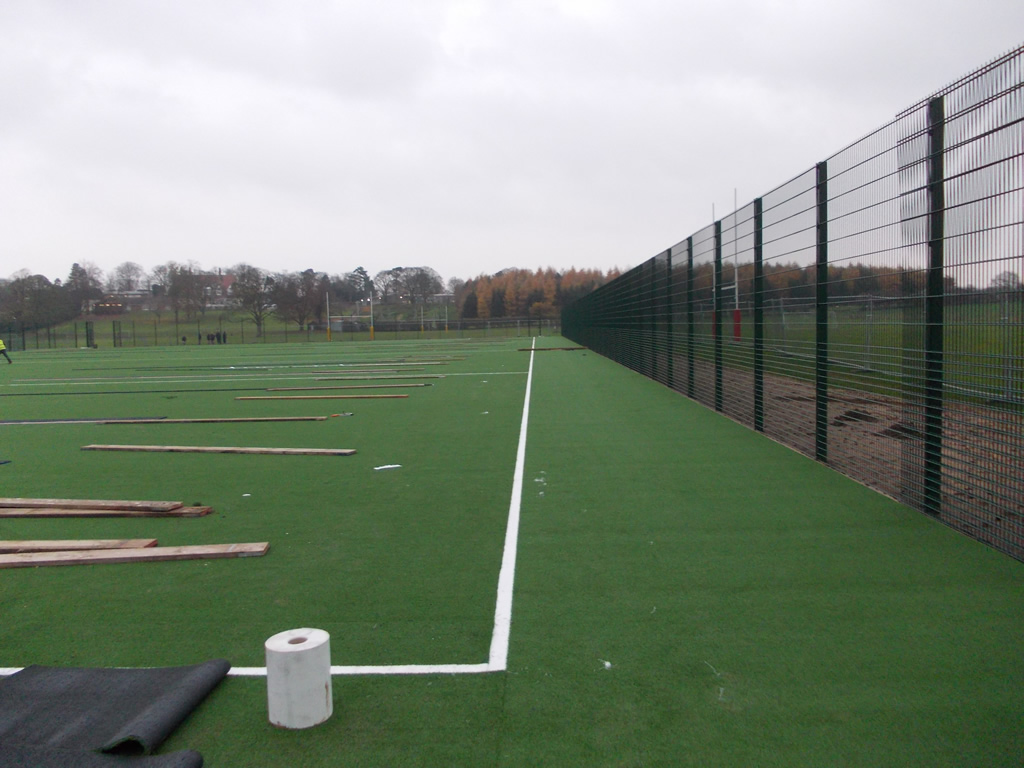 On a site restricted for space, the School required a synthetic grass hockey pitch, which was installed with perimeter fencing. This sequence of photographs show the layers of materials being laid.