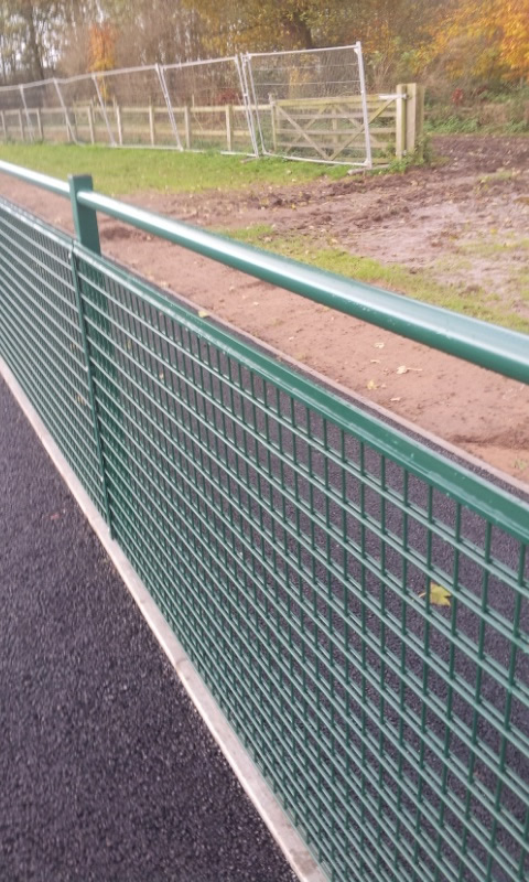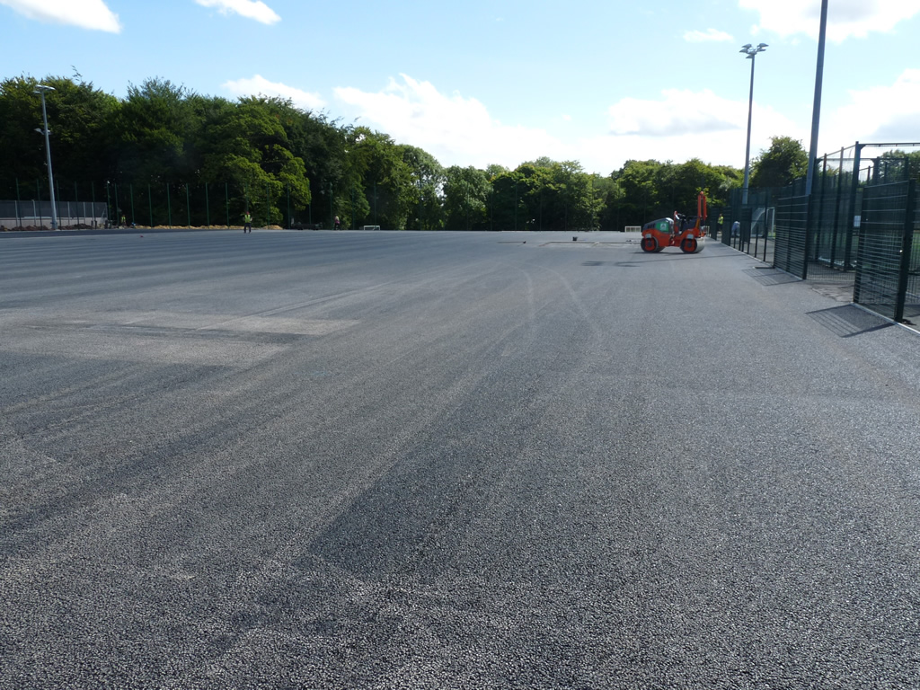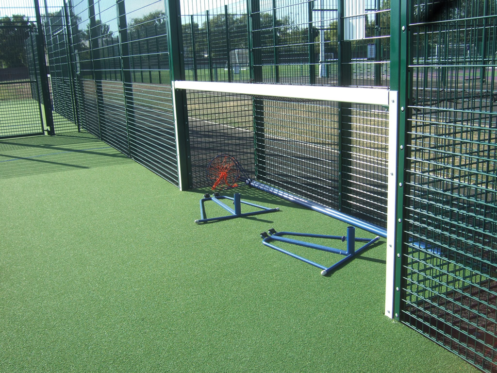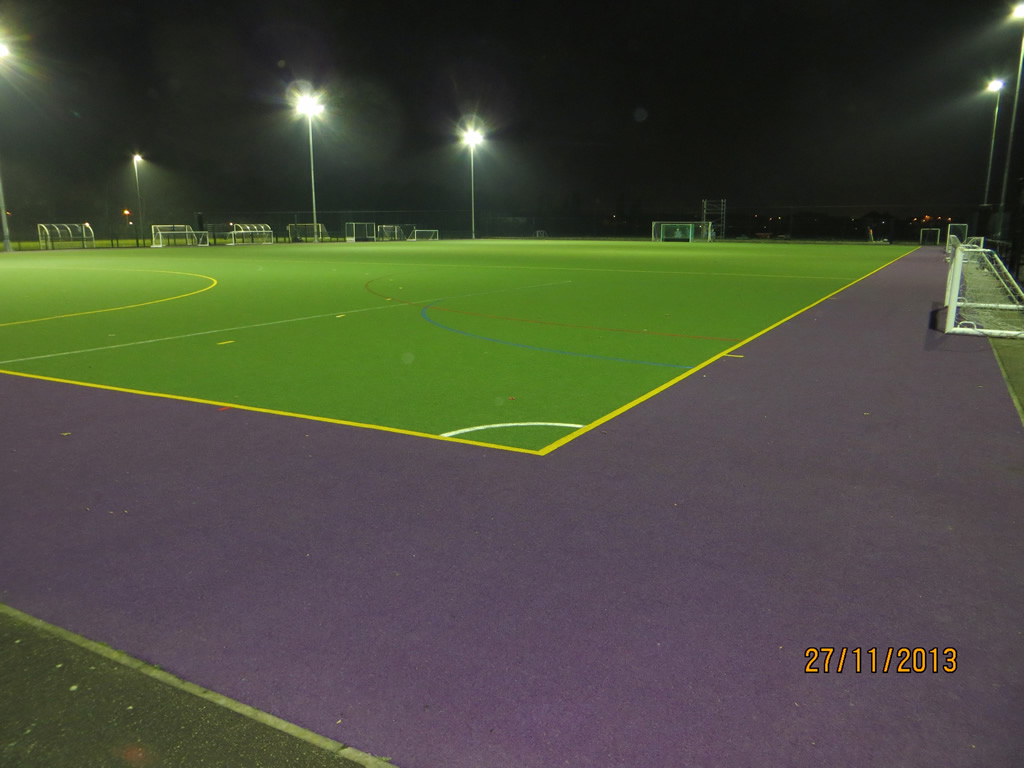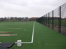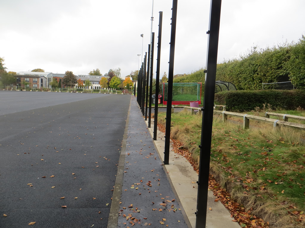 The existing hockey pitch was resurfaced with a new macadam base, insitu rubber shockpad and sand dressed carpet. The original fence was removed and a new twin bar clad fence was erected.