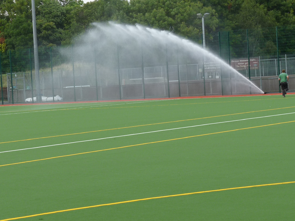 An existing sand dressed hockey pitch was re-developed to provide an FIH Global Standard water based pitch with automatic irrigation and upgraded floodlighting.