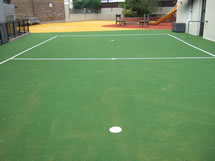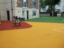 The old playground surface was tired and a new surface was required for the Schools's younger pupils. Different coloured carpets are used to denote differing play zones. The sand dressed carpet was laid over the existing polymeric/rubber based surface, to conserve its shock absorbing quality.